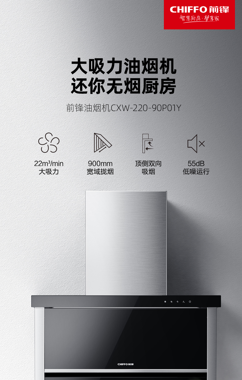 前鋒平板雙吸油煙機(jī)90P01Y